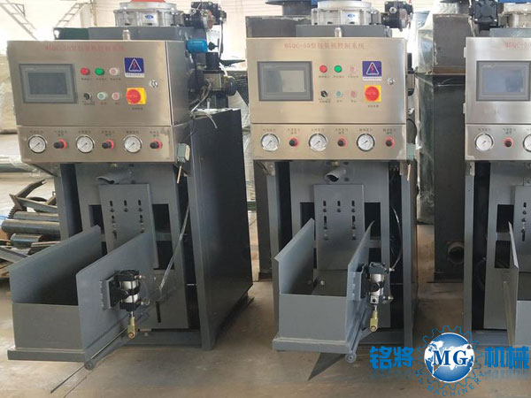 該機自動化程度高,操作簡單,配備新研發的自動卸袋裝置,只需工人插袋(適應閥口袋)即可完成包裝生產工藝,節省人工、減輕勞動強度,有效降低生產成本,提高生產效率。氣壓式閥口包裝機以壓縮空氣為動力,壓縮空氣瞬間進入密閉存料斗空間,使物料由靜止狀態迅速進入流化狀態,從而實現氣動輸送給料。存料斗密閉采用氣動橡膠閥門,可通過控制閥門的通流面積,達到控制包裝物料的給料量,實現有效和穩定的包裝速度和精度。