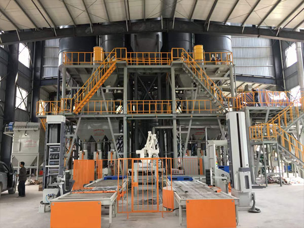 2018年,貴州磷化集團同我司簽約年產20萬噸輕質抹灰石膏砂漿智能化生產線,該生產線具備全線自動化運營,配料、混合、包裝、輸送、碼垛、纏膜等,高效綠色環保等特點。成功實現及化學添加劑流動輸送配料,主機采用無重力混合機,攪拌均勻柔和,配料精準高效,有力保障了成品輕質砂漿的實用保溫效果。